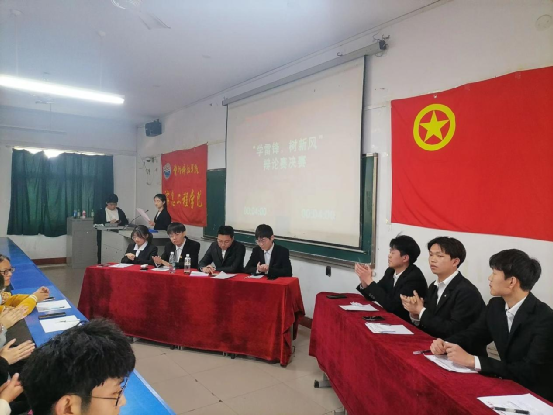 过五关斩六将来到决赛的辩手们已是更加从容自信。辩手们能言善辩,引经据典,由浅入深以翔实的论据有效论证了各自的观点质询环节上,他们辩风犀利、你来我往针对对方的陈述漏洞重重攻击将比赛带入一个又一个的高潮辩场氛围紧张而又激烈,最终正方获胜,取得“学雷锋,树新风”辩论赛的冠军,他们分别是正方一辩张智勇,正方二辩王椋栩,正方三辩贾玉申,正方四辩郑灿。正方三辩贾玉申获得全场最佳辩手。