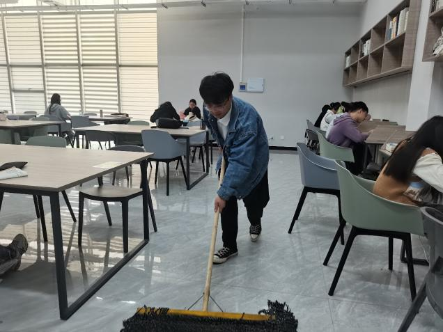 此次活动中,同志们积极主动,有组织有秩序的展开实践活动,同志们井然有序的进入图书馆,负责人向同志们介绍相关事项后进行分组,一组负责打扫图书馆一楼走廊和自习室,另一组负责整理四楼图书室,同志们配合默契,高效完成任务,让图书馆更加干净整洁。