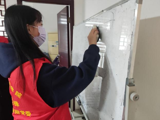 当天,在公司总经理户经理的带领和安排下,志愿者们到达企业所在楼层并先后进行打扫工作室卫生、整理办公室桌面、清洁会议室白板、整理文件等工作,协助企业员工营造良好的工作环境。打扫完毕后,志愿者们将垃圾带到企业大楼下进行垃圾分类投放并在裕鸿大楼一楼的社区党群服务中心值班同志的安排下对一楼社区党群服务中心进行清洁打扫。