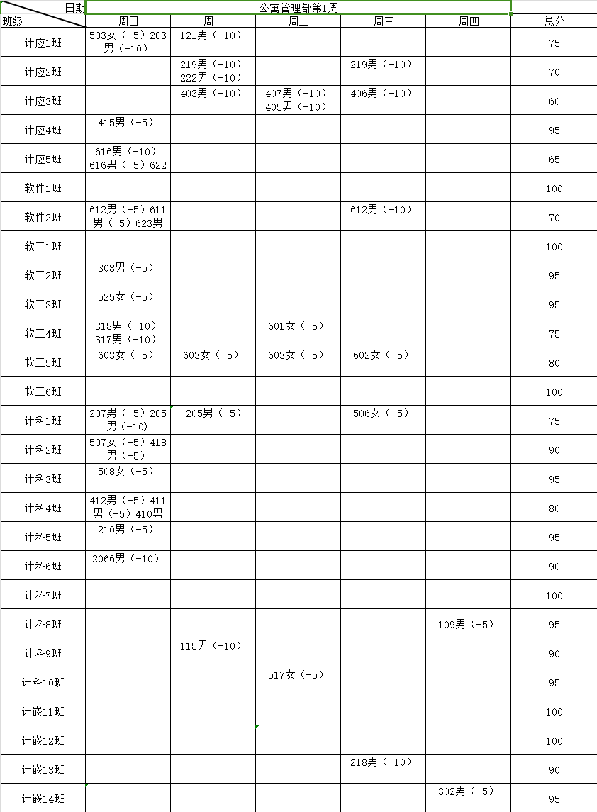 本周公寓管理部工作正常开展,公寓管理部全体成员始终秉持认真负责的态度,做好本部门日常工作,晚上按时进行查寝,及时核对宿舍人员是否到齐,宿舍卫生是否正常打扫。本周女生宿舍表现良好,仅有个别宿舍卫生较差,个人物品摆放不整齐;男生极个别宿舍出现违禁品现象。公寓管理部成员耐心与宿舍成员沟通,告知各宿舍卫生检查标准以及禁止携带违禁品情况,要求各宿舍成员团结协作,共同维护好宿舍卫生。同时每天做好查寝记录汇总,及时向各辅导员汇报当天晚上查寝情况,再接下来的日子里,公寓管理部成员会继续努力工作,做好个人工作总结,不断改进,共同创建和谐美好的文明宿舍。