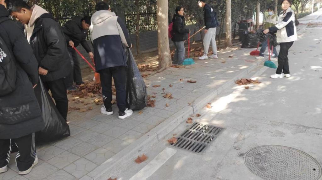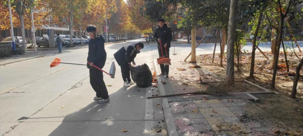 在落叶飘零的季节,软工4班组织走出课堂,体会劳动。走在校园里,沐浴着灿烂的阳光,呼吸着新鲜的空气,我们发现许多落叶堆积在路边,风一吹,叶子刮得到处都是,给美丽的校园打了折扣。所以我们决定把这些散落的树叶清扫干净。不仅能营造美丽清洁的校园,还能提升同学们的无私奉献精神。