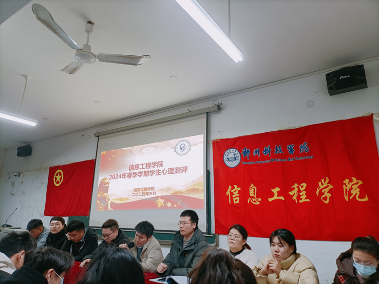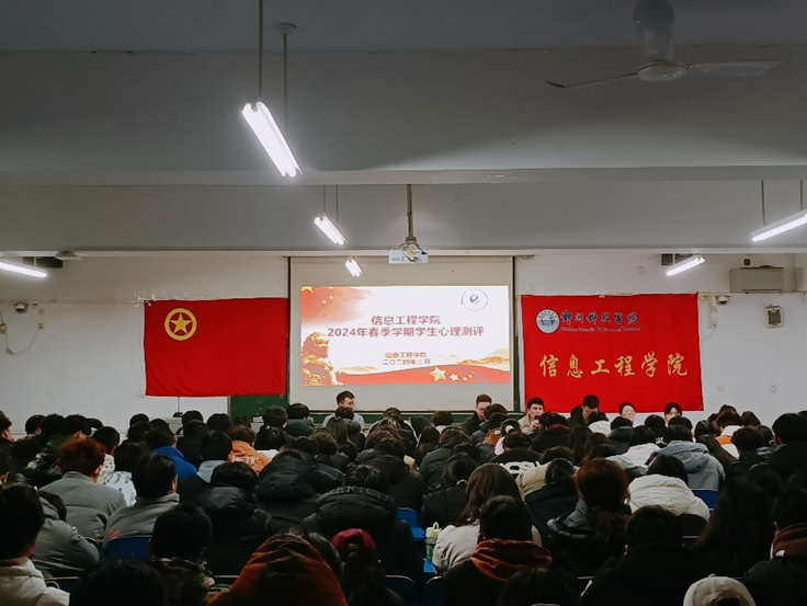 值此春光明媚之际,信息工程星空(中国)迎来了充满活力的2024年春季学期。星空(中国)始终将学生全面发展放在首位,不仅追求学术成就和技术精进,更深切关注每位学子的心理健康状态。为了全面评估和支持同学们的心理健康发展,动员学生开展心理测评,信息工程星空(中国)于2024年3月4日在综合北楼综合一开展2024年春季学期学生心理测评普查动员工作。此次会议由信息工程星空(中国)学工办主任、团委书记钱誉主持,参会人员有:信息工程星空(中国)学工办副主任徐子寒、全体辅导员老师以及各班班级心理委员、学生干部、学生党员、寝室长等。