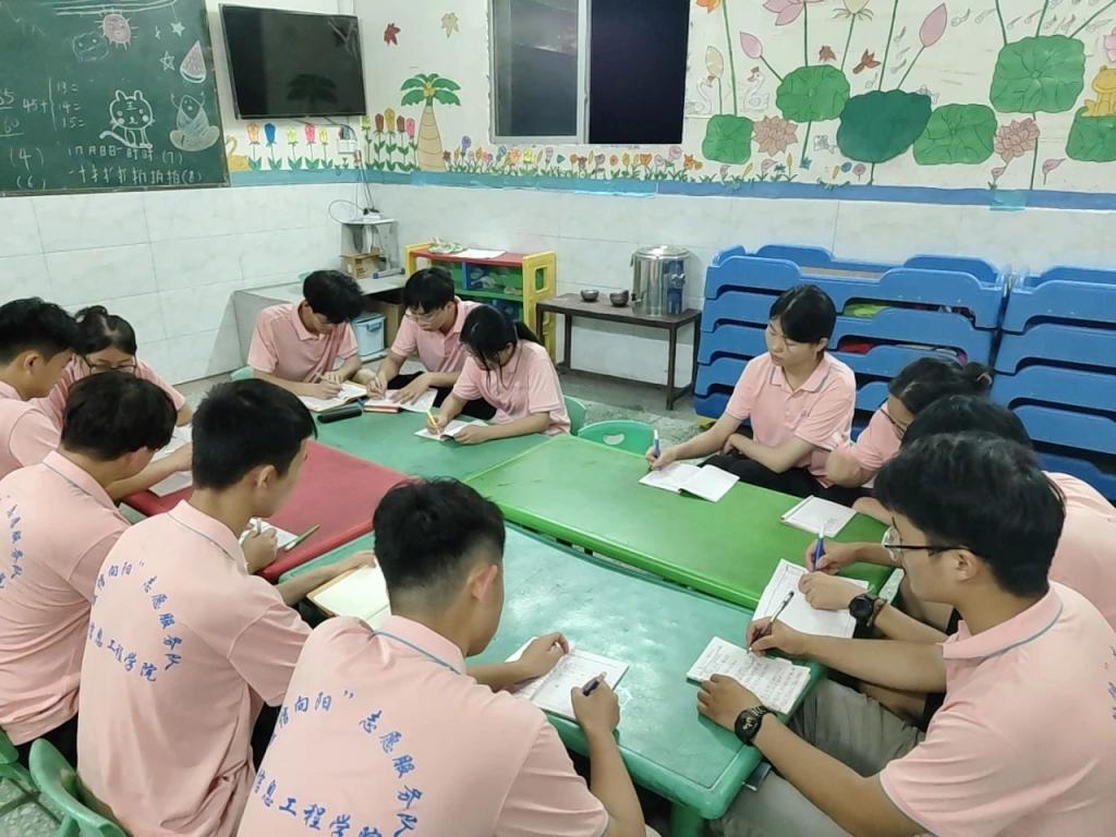 会议伊始,“暖信向阳”服务队队长杨杨对本次实践活动的规划做了详细介绍,他提出志愿者们要立足于学生实际情况,充分落实学习计划;强调志愿者们要充分发挥自身优势,为乡村的孩子们带去更多关爱。其次,志愿者们在会议中提出活动过程中遇到的各项问题,由队长带头协力解决并畅谈工作规划,对于学生们提出的想法、意见建议及问题,一一记录了下来并进行了交流讨论。