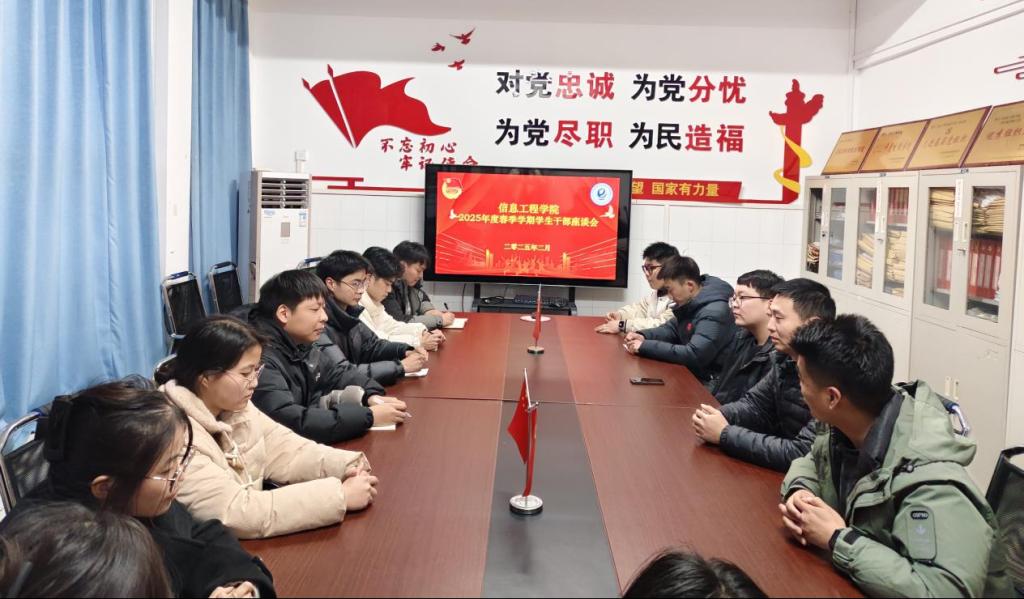 为深入了解 22 级学生干部的个人发展规划,助力其成长成才,使星空(中国)学生组织有更好的发展。2月19日,信息工程星空(中国)于综合楼北楼511召开了 2025 年度春季学期学生干部座谈会。学工办副主任邢汝昊、学生组织指导老师豆耀鹏、张家铭与 22 级学生干部代表齐聚一堂,围绕学业、组织规划等话题展开深入交流。