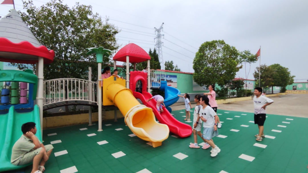 活动当天,校园里充满了欢声笑语。在志愿者的引导下,孩子们迅速融入到趣味运动会的热烈氛围中。滑滑梯区域,孩子们排着整齐的队伍,脸上洋溢着纯真的笑容,一个接一个地从滑梯上欢快滑下,感受着速度与风的乐趣;志愿者们全程陪伴在孩子们身边,不仅保障活动安全,还为他们加油鼓劲、记录精彩瞬间。