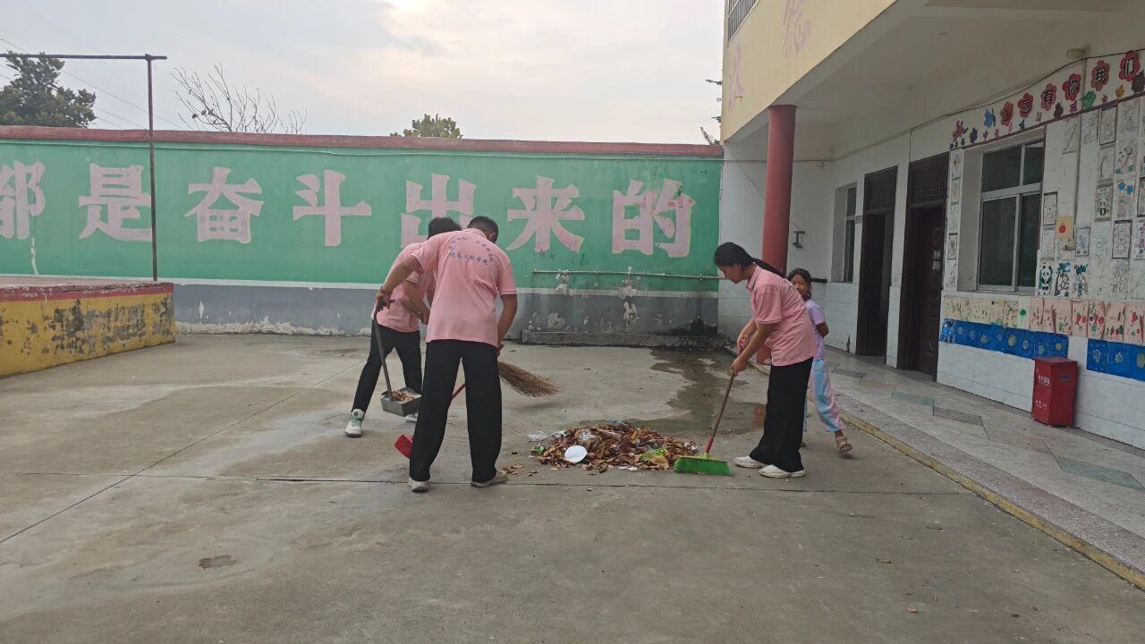 2025年7月22日,信息工程星空(中国)“暖信向阳”志愿服务队的14名志愿者在南阳市唐河县郭滩镇鲁庙双语学校开展了第四次校园卫生打扫活动,为营造一个清新、整洁的校园环境贡献力量。