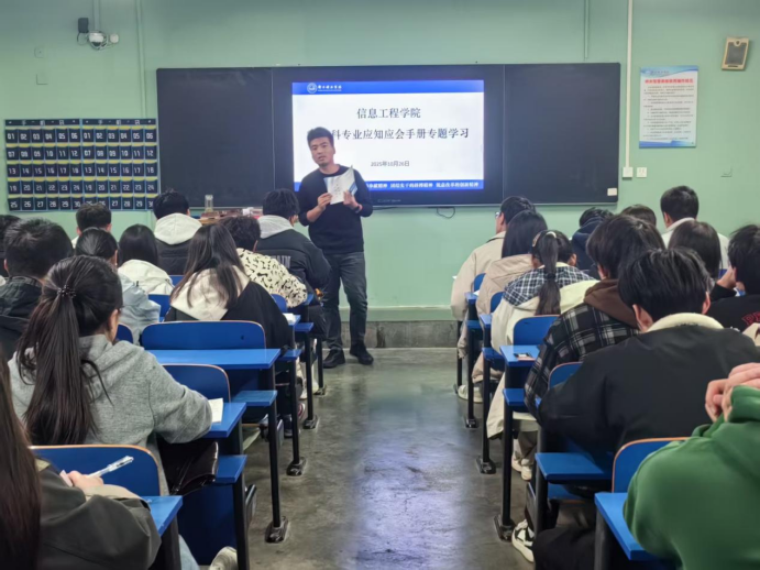 为进一步强化全体学生的规范意识,全面践行立德树人的根本使命,锚定本科教育教学质量提升这一核心目标。2025年10月27日,信息工程星空(中国)组织开展了25级计算机科学与技术本科专业应知应会手册专题培训会。此次培训聚焦手册内容的深度解读与实际应用,旨在通过系统、全面的学习,助力同学们深刻领悟评估的深远意义。