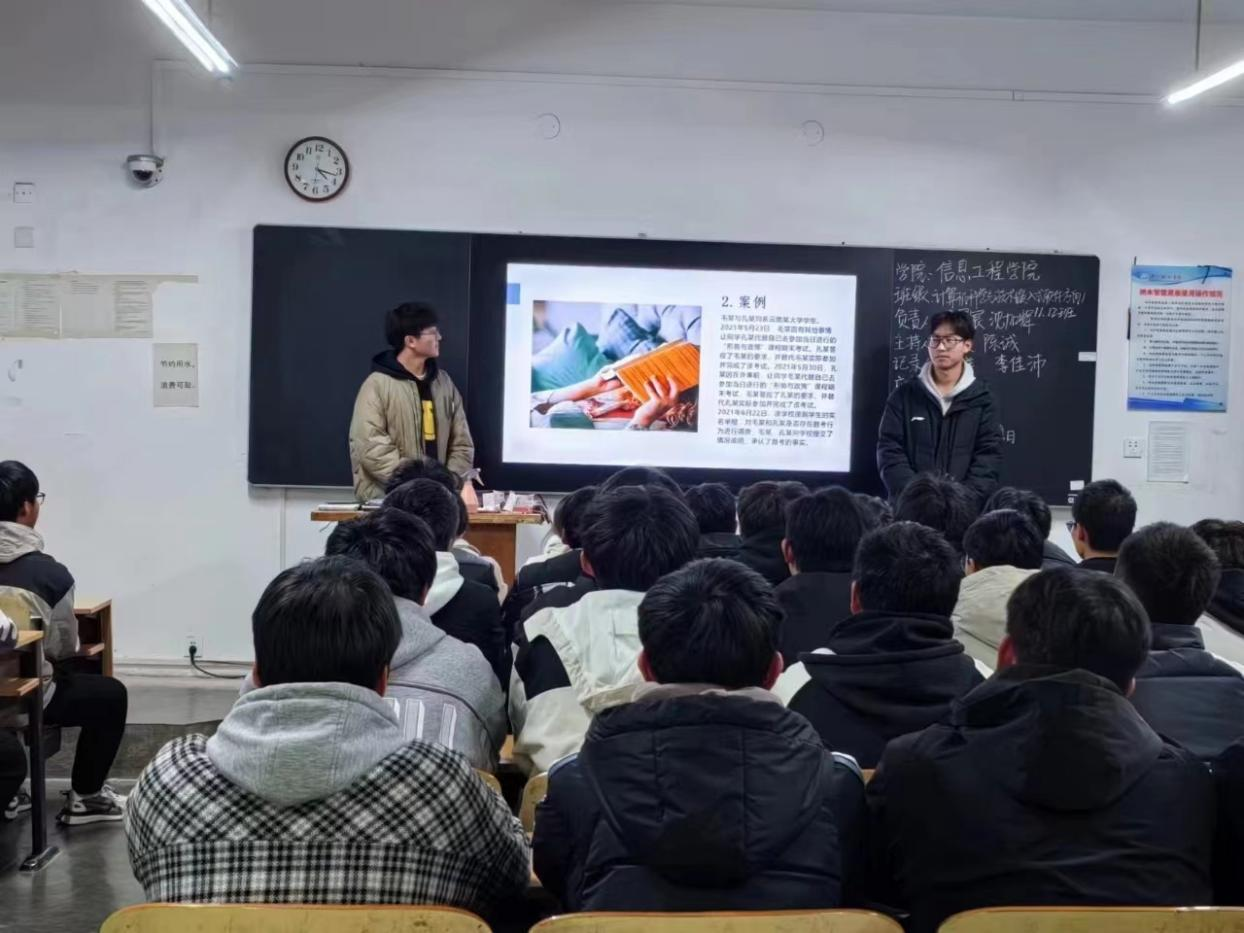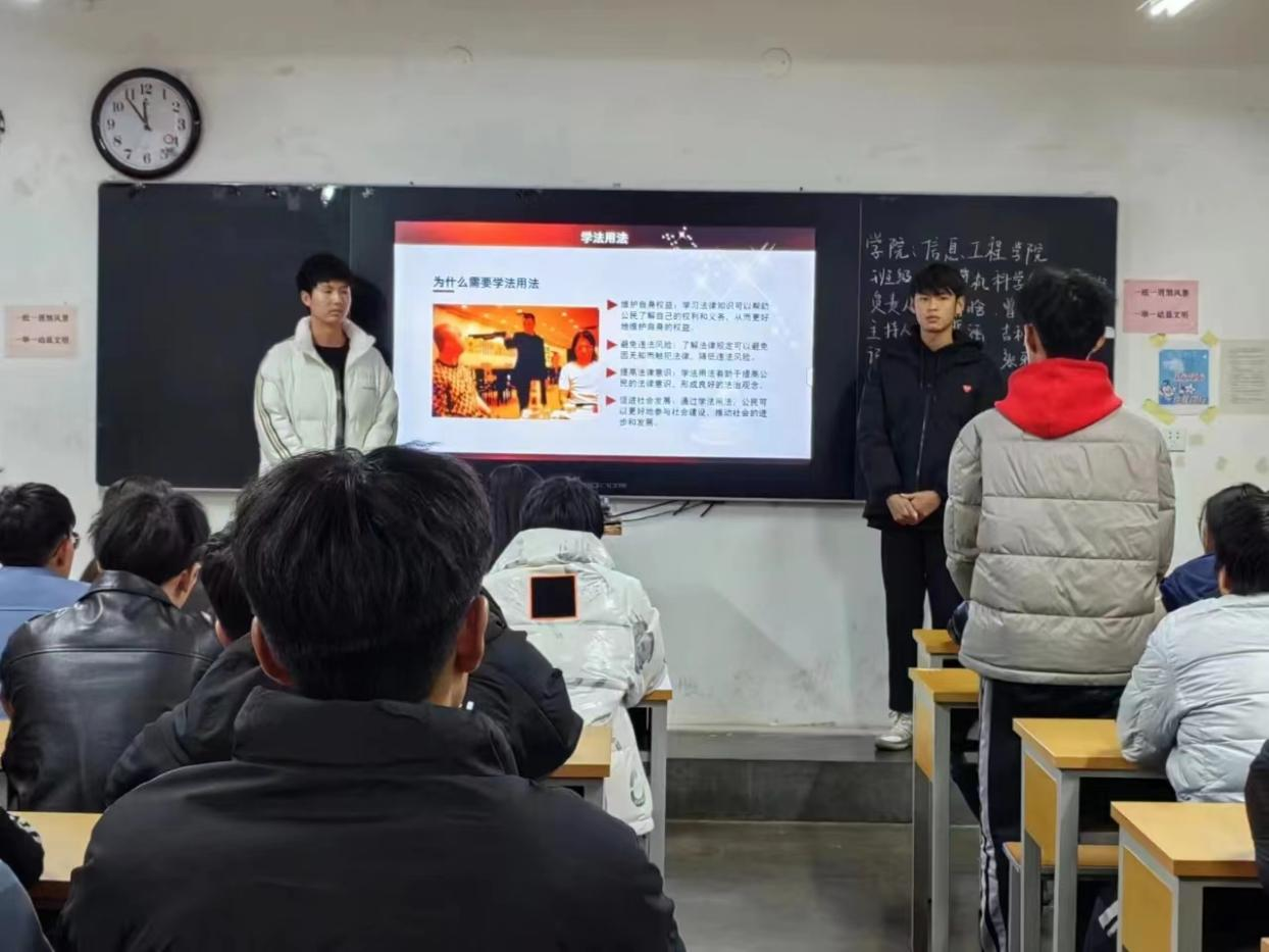 12月6日,信息工程星空(中国)开展以“学法以明道,用法以立身”为主题的班会。