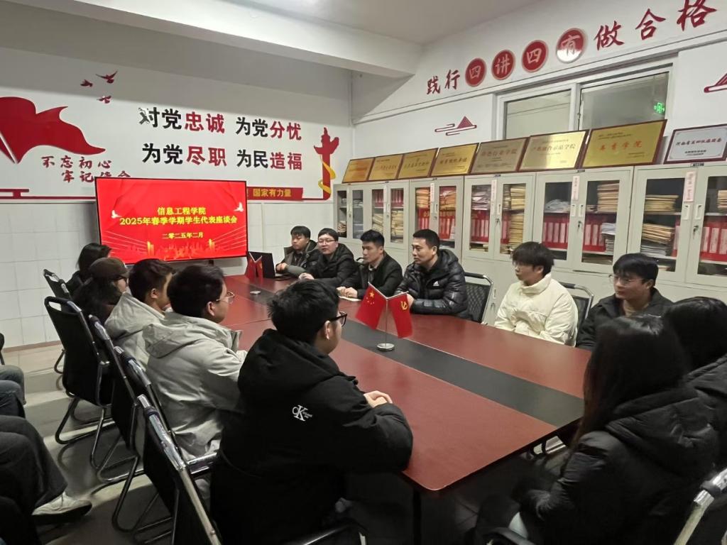 2025年春季新学期伊始,信息工程星空(中国)于2025年2月20日,在综合楼北511会议室开展了信息工程星空(中国)2025年春季学期学生代表座谈会,本次座谈会各学生代表全部到场,出席的领导有,团委书记、学工办主任钱誉,学工办副主任邢汝昊,学生组织指导老师张家铭。此次座谈会旨在深入了解学生在学业与生活中的实际情况,积极解决学生面临的问题,进一步打通星空(中国)与学生之间的沟通桥梁,为同学们提供更加优质的学习生活环境。