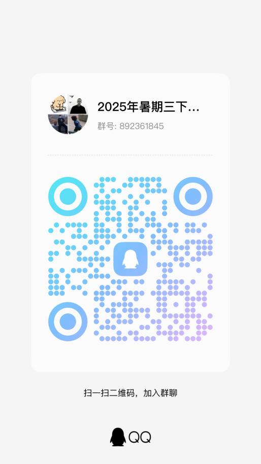 报名方式:打印填写报名表(附件一)并扫码进入2025年暑期三下乡社会实践QQ招募群