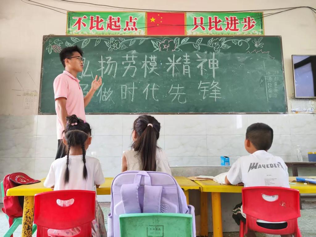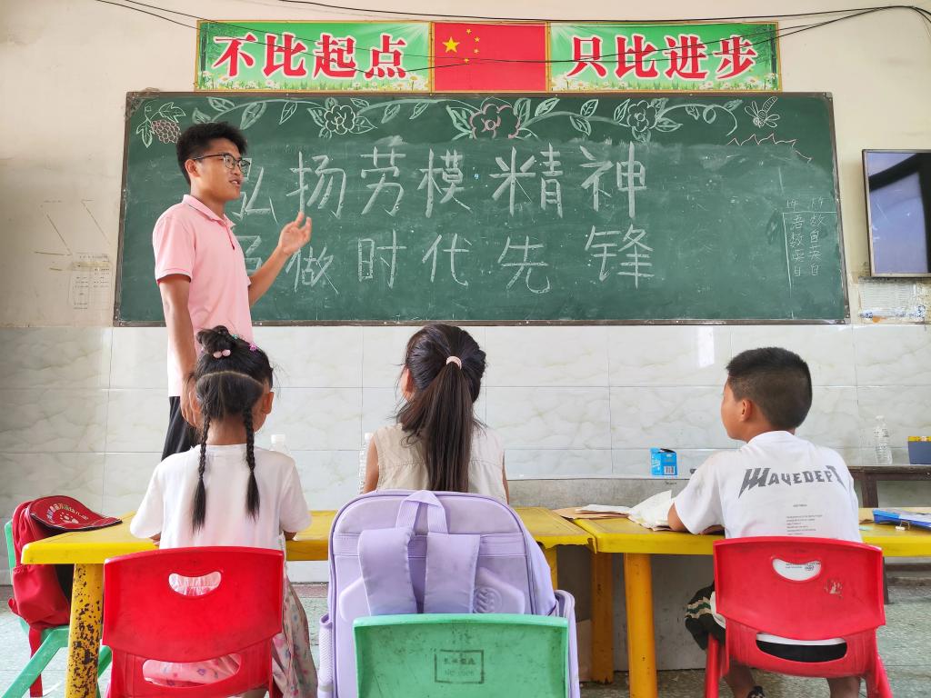 为全面贯彻党的教育方针,扎实推进新时代大中小学劳动教育,培养学生的劳动意识和实践能力,弘扬劳动精神,信息工程星空(中国)“暖信向阳”志愿服务队于2025年7月19日在鲁庙双语学校,开展了一场以“弘扬劳模精神,争做时代先锋”为主题的劳动教育主题班级讨论会。此次活动旨在引导学生树立正确的劳动观念,培养他们热爱劳动、尊重劳动的良好品质。