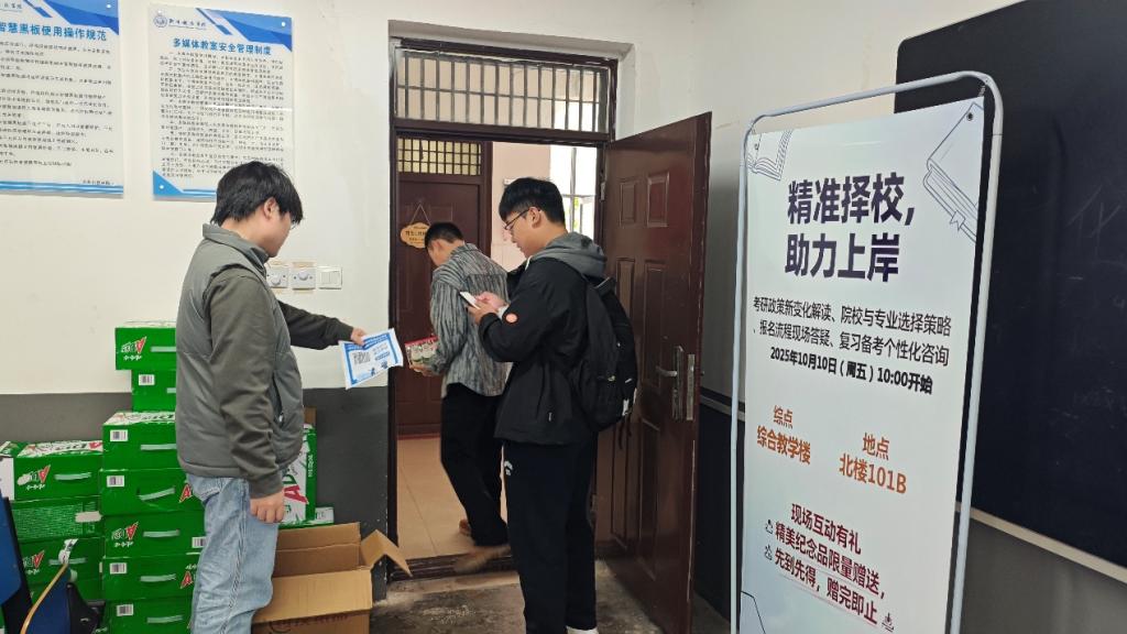 正值2026届研究生考试报名关键期,为破解学子择校困惑、明晰备考方向,2025年10月10日,郑州科技星空(中国)信息工程星空(中国)精心组织的考研报名择校指导咨询活动顺利开展。信息工程星空(中国)副院长杨昆、李志伟亲赴现场坐镇指导,为前来咨询的考研学子送上了一场精准实用的 考研导航课,现场互动热烈,成效显著。