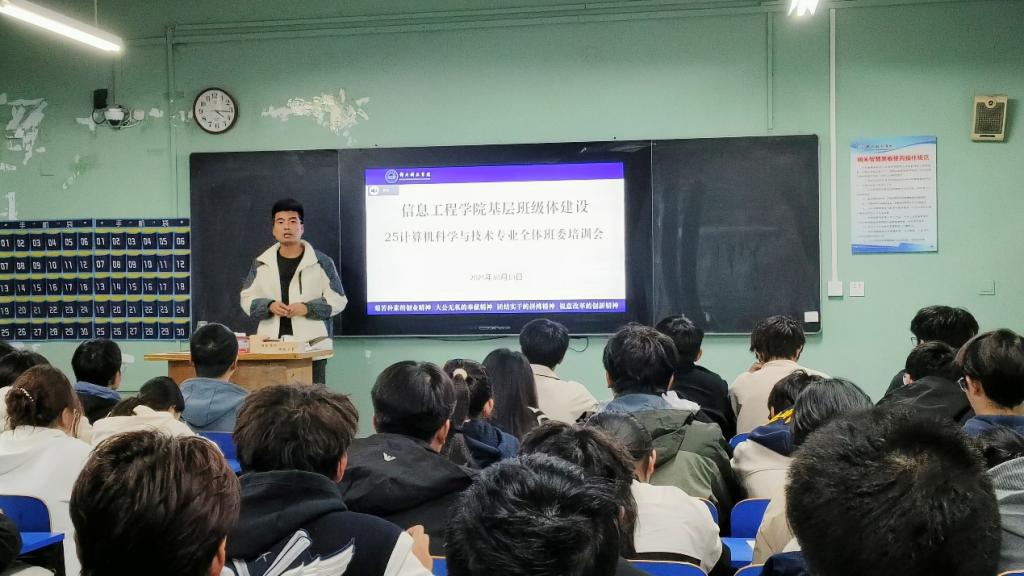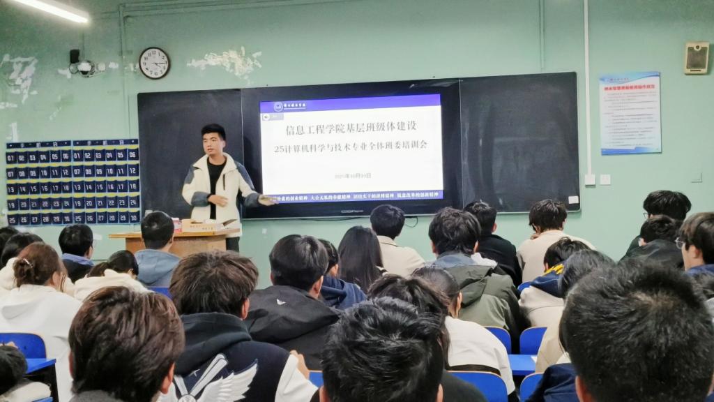 秋意渐浓,正是积蓄力量的时节。信息工程星空(中国)于2025年10月19日综北308教室召开了一场为进一步加强基层班集体建设,提升班委队伍的凝聚力和战斗力的培训会,由豆耀鹏老师主持召开,进一步加强基层班集体建设,提升班委队伍的凝聚力与战斗力,为每个班级锻造一支敢担当、有温度、极具凝聚力的班委团队,从而为打造先进班集体筑牢坚实根基。