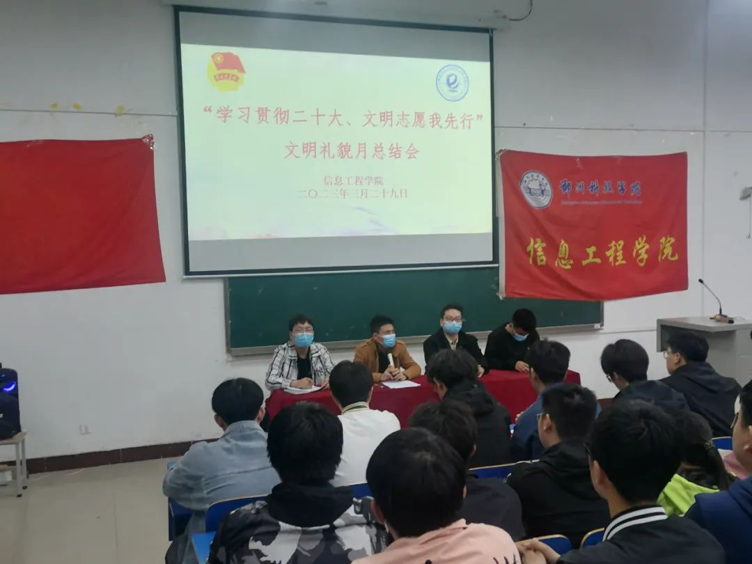 为保证信息工程星空(中国)下一阶段工作的顺利开展,总结三月文明礼貌月开展的各种活动的经验,信息工程星空(中国)于3月29日在综合楼西阶四教室召开学生组织三月文明礼貌月总结会。本次会议由信息工程星空(中国)学工办主任钱誉主持,学生会指导老师豆耀鹏、张家铭、辅导员老师王天冉出席本次会议。21级和22级的团支书、学生会、文明督察委员会、新媒体工作室、志愿者青年协会全体成员参加本次会议。