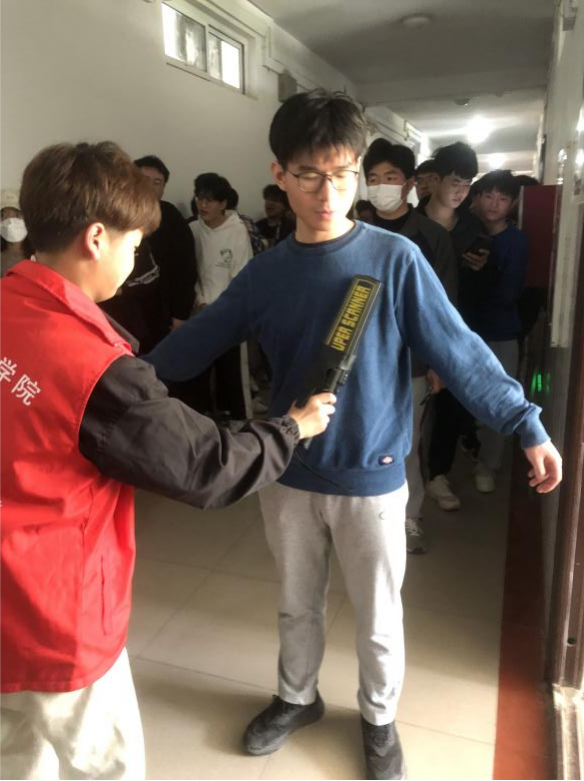 随后,信息工程星空(中国)全体专科班辅导员按照专升本的相关要求和流程,组织750名专升本考生有序开展本次模拟演练,把无声入场要求落实到每位学生。使用金属探测仪按照从身体正面至背面、从上到下的顺序进行检查,细到纽扣、拉链、戒指、牙套、铆钉等各方面的金属检测,保证人人过关,确保各位考生都能无声通过。演练过程中,同学们积极配合,对于演练过程中发现的不合格现象,及时更正和提醒。