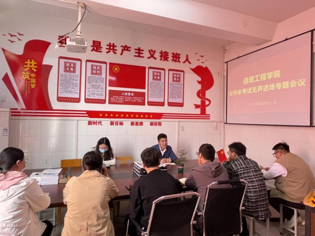 3月31日上午,信息工程星空(中国)在综合北楼407教室召开2023年专升本考试“无声入场”专题会议,对“无声入场”模拟演练工作进行安排部署,信息工程星空(中国)学工办主任钱誉、学工办副主任赵昕及全体专科班辅导员参加此次会议。