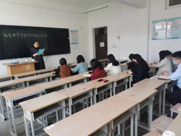 本次专题学习会上,王玉萍老师首先带领全体教师对本科教育教学评估实施方案进行了学习。并对其中内容进行了重点提炼与分析,并进行了详细分工,并对各位老师提出了三点要求:一是对照学校工作部署,各老师要明确任务,勇于担责;二是要从现在开始行动起来,属于自己的职责工作及时完成;三是要争先创优,做出成绩,做出特色。王玉萍老师指出,今后教学过程中我们要坚持围绕指标体系对教学全过程进行系统设计并在进行建设和改革的过程中,要全面布局,重点突出,双手要双手抓,教师队伍与学生学习同步发展。