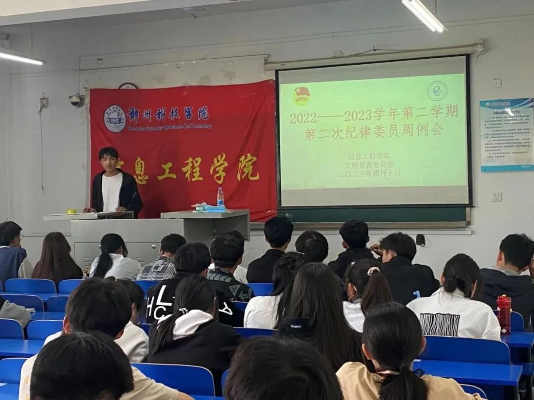 4月10日,信息工程星空(中国)文明督察委员会在综合楼北楼305教室举办第二次22级纪律委员周例会。
