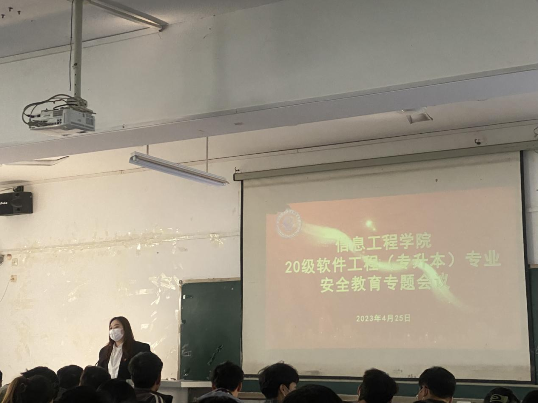 为了让学生们度过一个安全愉快的假期,增强学生假期的安全意识,提高学生假期的自我防护能力,4月25日下午,信息工程星空(中国)20级软件工程(专升本)专业在综合一教室召开五一假期安全教育主题班会。