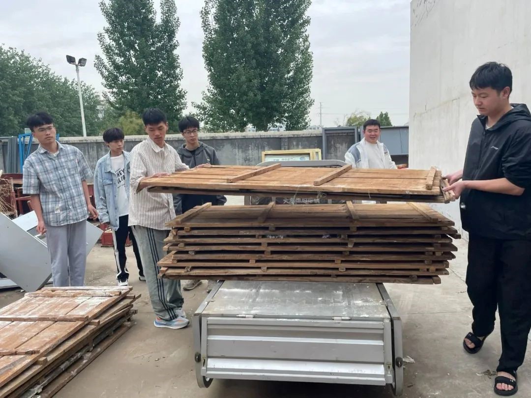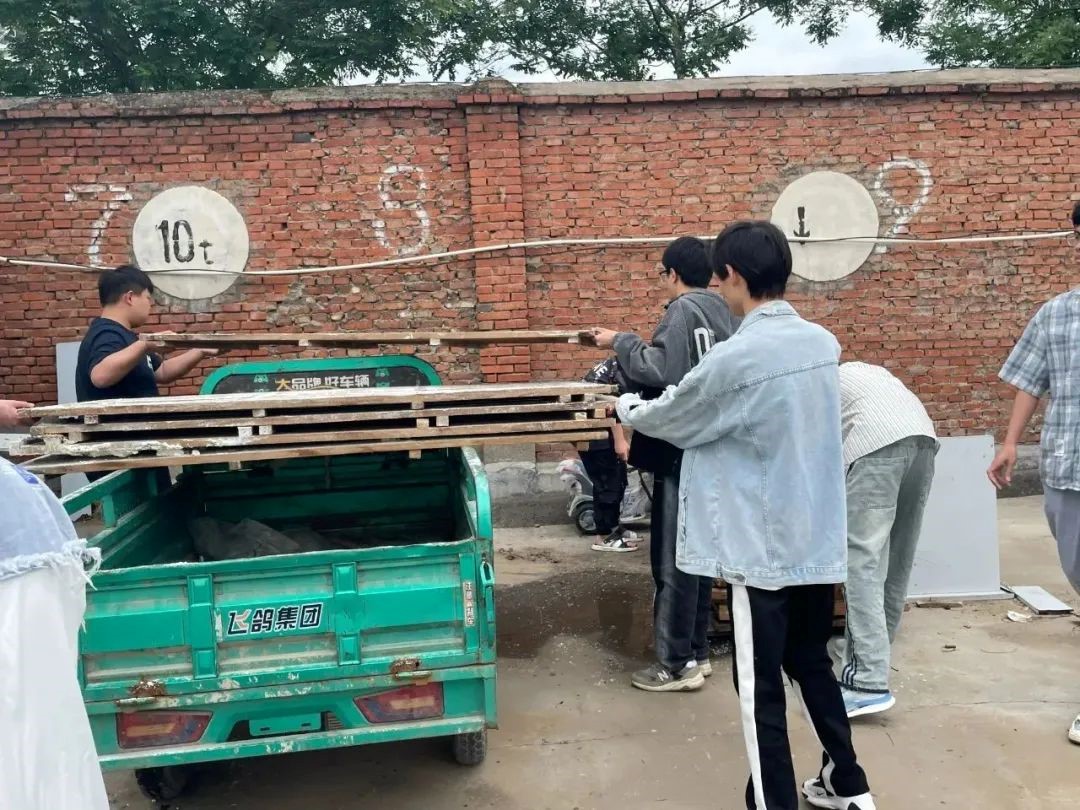 活动伊始,参与本次活动的志愿者们提前有秩序地到指定地点集合,与总务处对接好工作后,前往工作地点进行物资的搬运。所有人都齐心协力地把眼前的物资搬运到三轮车上,装满后由一个人开车运送物资到指定地点,循环往返,将物资搬运完。在本次活动中,志愿者们不怕苦不怕累,分工明确,互相配合顺利完成任务。