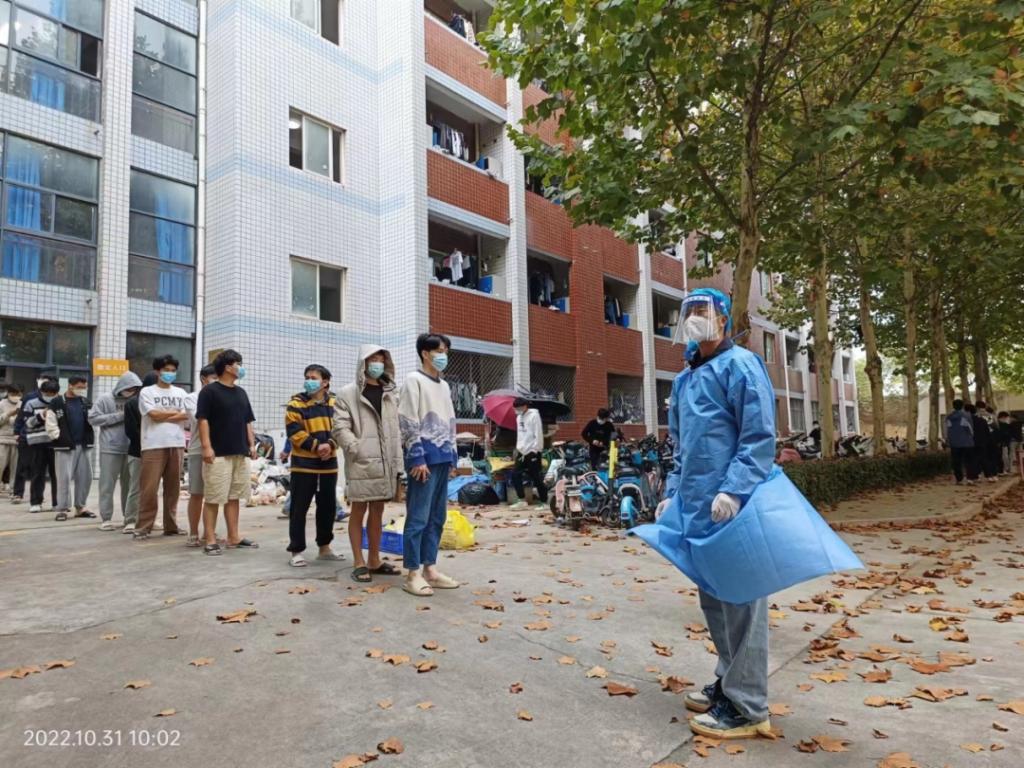 战“疫”日记篇在这将近两年的大学时光中,我们遇见最多的便是疫情,生为一名学生干部,我积极的参与在志愿服务的道路中,我不怕困难,一直在努力,所有在疫情防控的关键时刻,我选择了作为为院系服务的一名志愿者,每天作为一名疫情志愿者为院系服务,保证每位同学能够保证健康,参与核酸检测队伍的秩序维持,同时也去为医务人员帮忙,再者还会去帮助同学扫码等等。我选择用自己的时间和精力,为学校疫情贡献出自己的一份力。当我看见疫情防控工作顺利进行时,我觉得非常自豪与骄傲。
