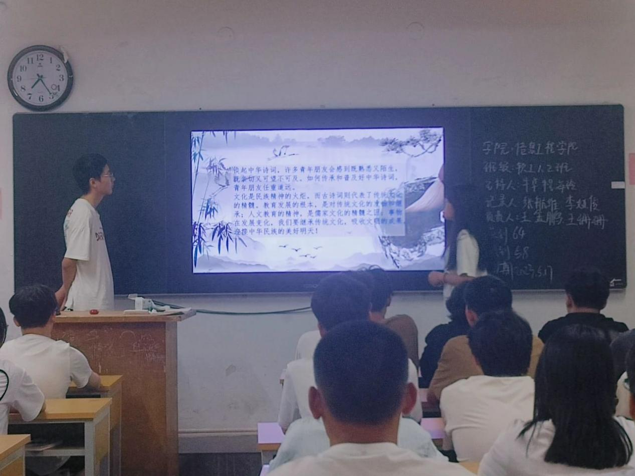 2023年5月17日,信息工程星空(中国)开展了“千古诗词传美德,中华精神代代传”主题班会。本次活动旨在让学生感受中华古文化的博大精深,体会古诗的意境,领悟诗人的情感,提高审美能力,同时弘扬中华民族优秀的诗词文化和中华精神。