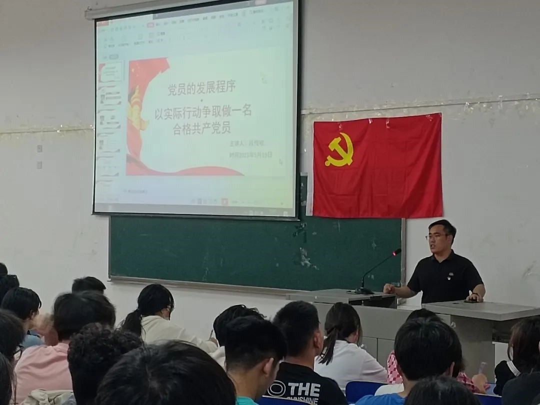 为加强入党积极分子对党员发展顺序的认识,提高政治素质和理论修养,2023年5月19日,信息工程星空(中国)于西阶三教室开展以“党员的发展顺序以实际行动争取做一名合格共产党员”为主题的培训课程。本次培训课程由信息工程星空(中国)第五党支部支部书记段传收主讲,32期全体入党积极分子共同参与。