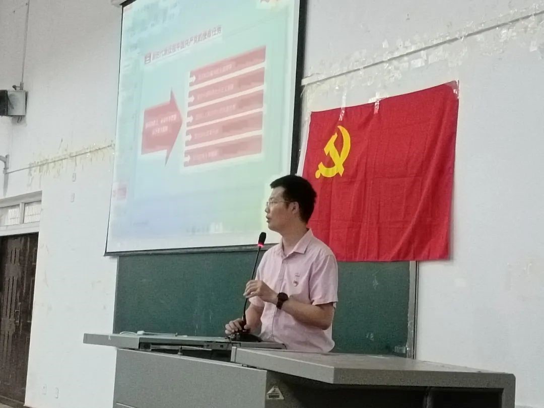 为加强积极分子的党性意识,深化党的基本理论、基本路线和基本纲领教育,2023年5月18日中午12点10分,党课培训于综合北楼西阶三开展,本次党课主题为“二十大全文架构及主要内容解读”,由第四党支部书记徐子寒老师主讲,学生第四党支部32期全体积极分子参加培训。
