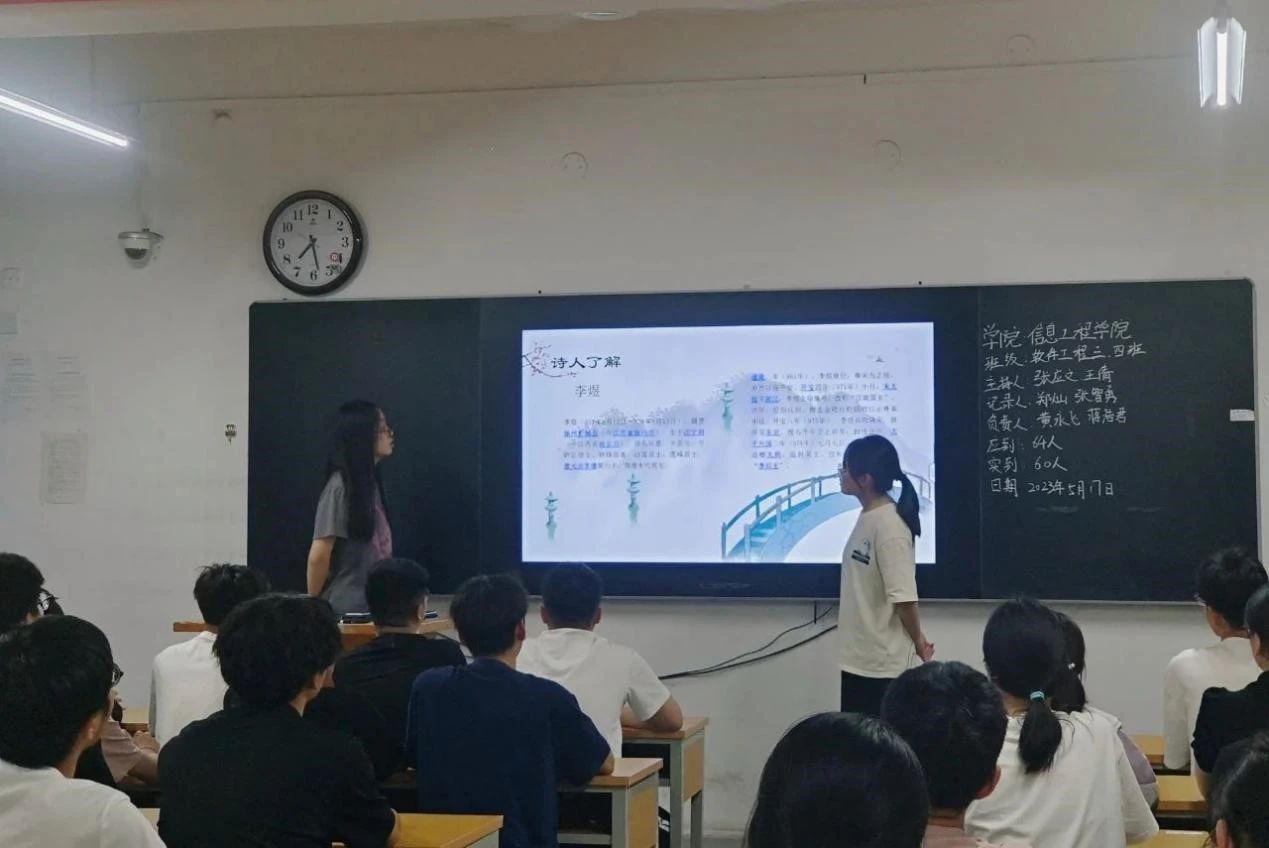 2023年5月17日,信息工程星空(中国)开展了“千古诗词传美德,中华精神代代传”主题班会。