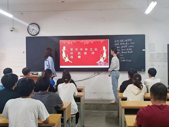 2023年5月24日,信息工程星空(中国)开展了“坚守中华文化,对抗崇洋浪潮”主题班会。本次班会旨在使大学生们坚定文化自信,增强文化自觉,增进文化担当,自觉推进社会主义文化强国建设。