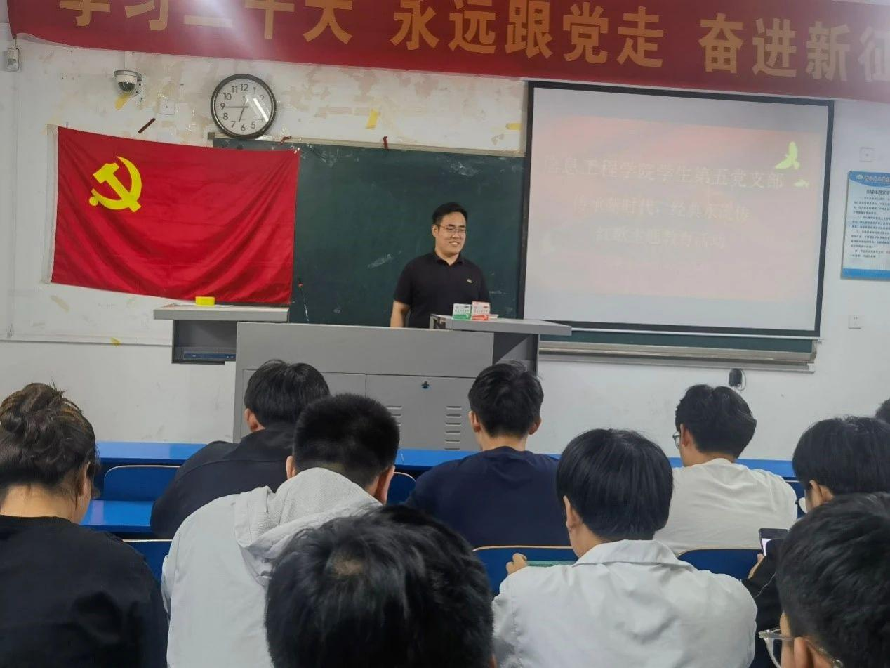 为欢送毕业生离校,2023年5月25日下午,信息工程星空(中国)学生第五党支部组织全体在校预备党员在综北101教室开展“传承新时代,经典永流传”红歌主题教育活动。此次活动由支部书记段传收带领大家学习《相逢是首歌》。