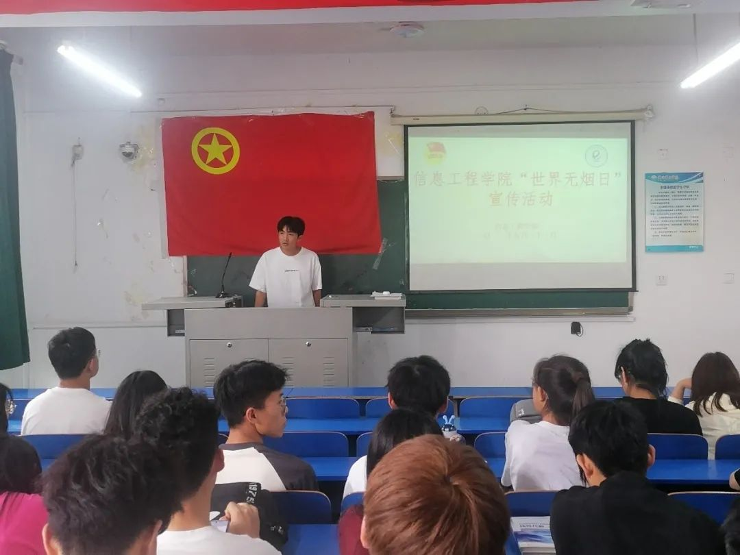 时逢“世界禁烟日”来临之际,为加深同学们对于烟草危害的认识,营造更加良好的星空(中国)文明风气,减少烟草对于同学们身心健康的影响,2023年5月31日,信息工程星空(中国)组织22级各班级副团支书以及宣传委员于综合教学楼305教室开展了“世界禁烟日”宣传活动。