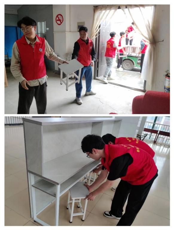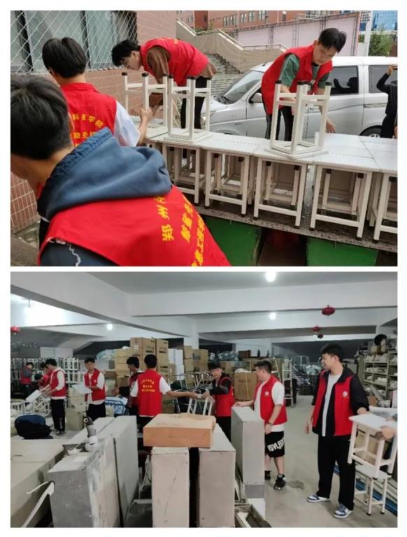 本次活动的主要内容是帮助总务处把音乐厅仓库里的凳子搬运到电教中心新开放的考研自修室内,并摆放整齐,为了给进行考研的同学制造温馨的学习环境,同学们还搬运了一些花朵绿植放在自修室的桌子上。