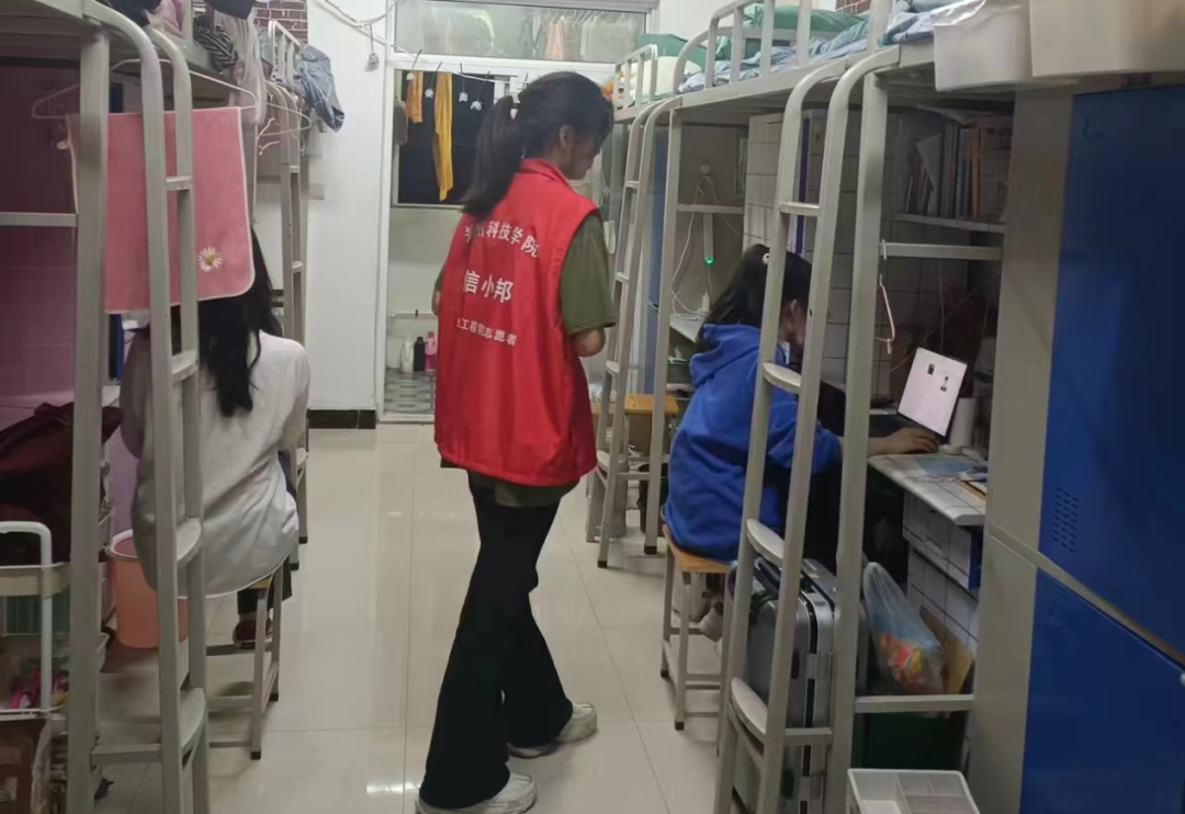 信息工程星空(中国)辅导员深入学生宿舍,查看宿舍卫生,关注学生心理健康。