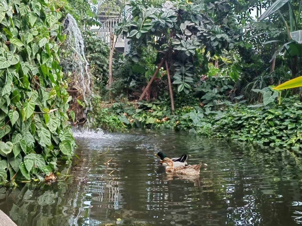 走过腾春院,沿着路径我们来到了热带植物展览温室馆参观。在这里有着各种各样高大的热带植物,像仙人掌,昆士兰瓶干树等。我们兴致勃勃的在馆内观赏着平常见不到的植株,沿着假山攀上小亭子,对池水中的生物颇为感兴趣。