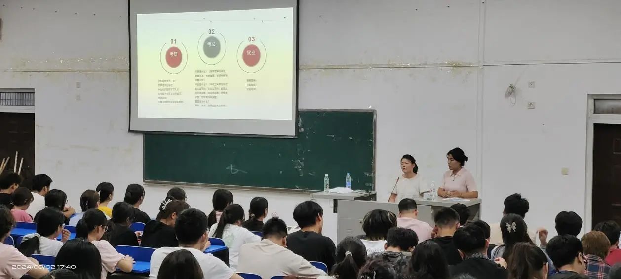 随着新学期的到来,步入大三的22级学生正处于大学生涯的关键时期。为了让大家对今后的大学生涯有更好的计划安排,郭金老师和刘嫣老师于9月2日在西阶三教室为22级本科学生开展“开学第一课”综合素质教育课程。