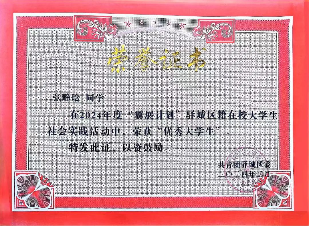 在党组织的怀抱中,她不仅是理论学习的热忱者,更是实践行动的先行者。每一次党支部组织的志愿服务活动,都能看到她忙碌而坚定的身影,她积极参与,无私奉献,将理论知识转化为实际行动力量。在志愿服务活动的广阔舞台上,她积极参与大学生“返家乡”志愿服务活动,到她的家乡驻马店市驿城区向阳社区团支部报到,进行了为期21天的志愿服务活动。她不仅奉献了自己的力量,更在实践中深化了对党的认识,锤炼了党性,展现了新时代青年的责任与担当。