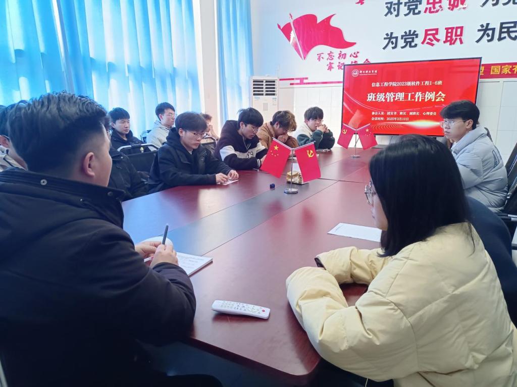 2025年3月10日,2023级软件工程专业在综合楼北楼511会议室召开班级管理工作例会。辅导员邓晓雷老师主持会议,2023级软件工程1-6班的团支书、班长、副班长、心理委员参与此次会议。会议伊始,邓老师便点明班级管理工作的关键意义,强调其不仅关乎事务推进,更是凝聚班级力量、塑造良好学风的核心所在。针对日常考勤、活动组织、同学心理健康等重点工作,邓老师提出“精细化管理、贴心化服务”的要求,期望班委发挥桥梁作用,让班级管理更具温度与实效。会上,各班委分享工作心得与困惑,大家共同讨论。邓老师针对班委们的疑问,从活动创新到管理优化,给出清晰的指导方向,进一步明确了后续工作规划与协作路径。会议最后,邓老师肯定了班委们的工作,并鼓励大家以“服务者”的姿态深耕班级建设,在各司其职的同时紧密协作,将个人力量融入班级发展大局。