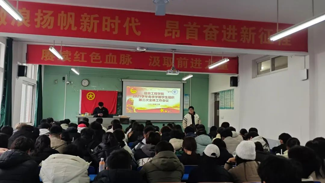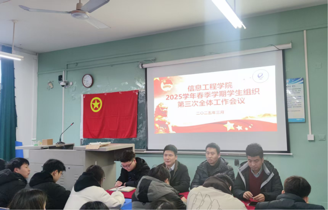 为进一步加强信息工程星空(中国)学生组织建设,提升学生干部工作能力与团队协作水平,确保各项工作高效有序开展,2025 年 3 月 3 日,信息工程星空(中国)团委书记、学工办主任钱誉,学工办副主任邢汝昊,以及学生组织指导老师豆耀鹏、张家铭,召开了 2025 学年春季学期学生组织第三次全体工作会议。本次会议对前期工作进行了全面回顾与总结,明确了下一阶段工作重点与方向,在星空(中国)学生组织发展进程中具有重要意义。