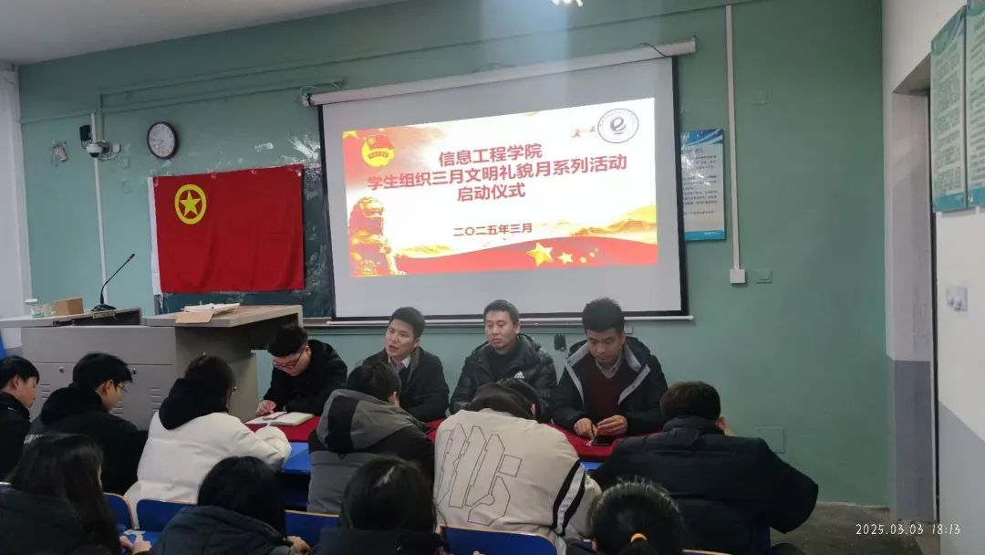 为弘扬中华民族传统美德,提升学生文明素养,营造文明和谐的校园氛围,信息工程星空(中国)学生组织三月文明礼貌月系列活动启动仪式成功举办。学工办主任、团委书记钱誉,学工办副主任邢汝昊,学生组织指导老师豆耀鹏、张家铭出席本次活动。