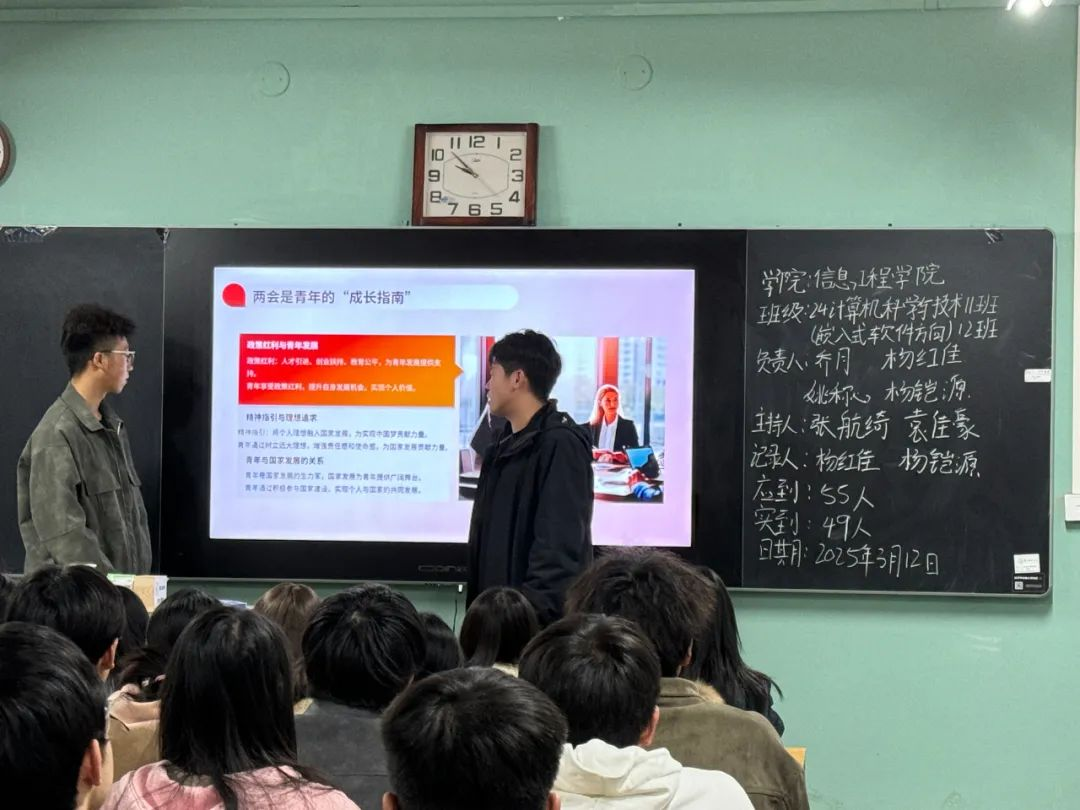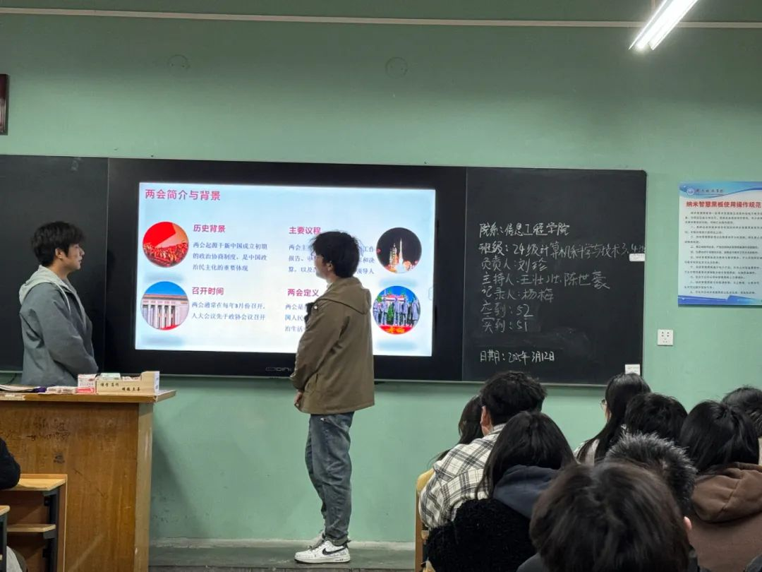 为大力推动两会的顺利发展,让同学们深入领会两会精神的核心要义,激发青年学子的责任感与使命感。信息工程星空(中国)在2025年3月12日开展了以“两会精神引领,青年使命担当 ”为主题的班会。