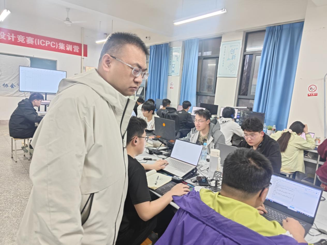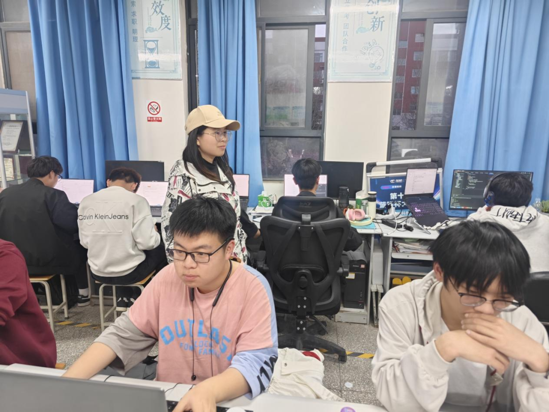 同时,李志伟和刘青凤两位指导老师亲临比赛现场,全程监考。从考试开始的那一刻起,他们就肩负起维护考场秩序与公平的重任。一位老师不时在过道间轻缓踱步,仔细查看同学们的作答情况,确保公平公正;另一位老师则在讲台前时刻关注着全场动态。他们严谨认真的态度感染着每一位参赛同学,让这场周测充满了庄重的仪式感,也让同学们更加明白此次周测的重要性,激励大家以最饱满的精神状态投入到这场算法的较量之中。