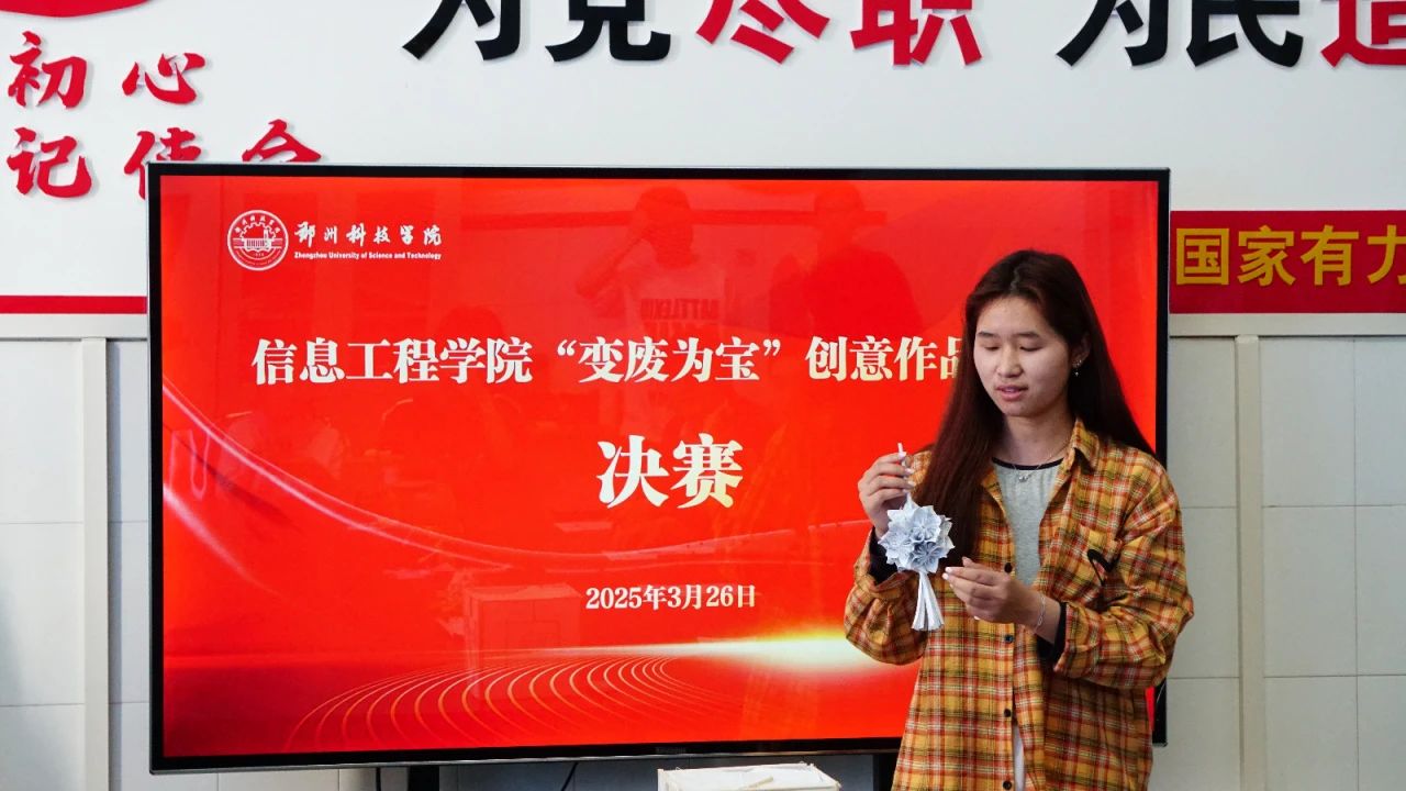 在“文明礼貌月”的春风里,信息工程星空(中国)“变废为宝”创意改造大赛决赛3月26日在综北511会议室成功举办!本次大赛以“文明新风尚,环保我先行”为主题,吸引了全院学子积极参与,将废弃物品转化为兼具实用价值与艺术美感的作品,用实际行动诠释绿色发展的深刻内涵。