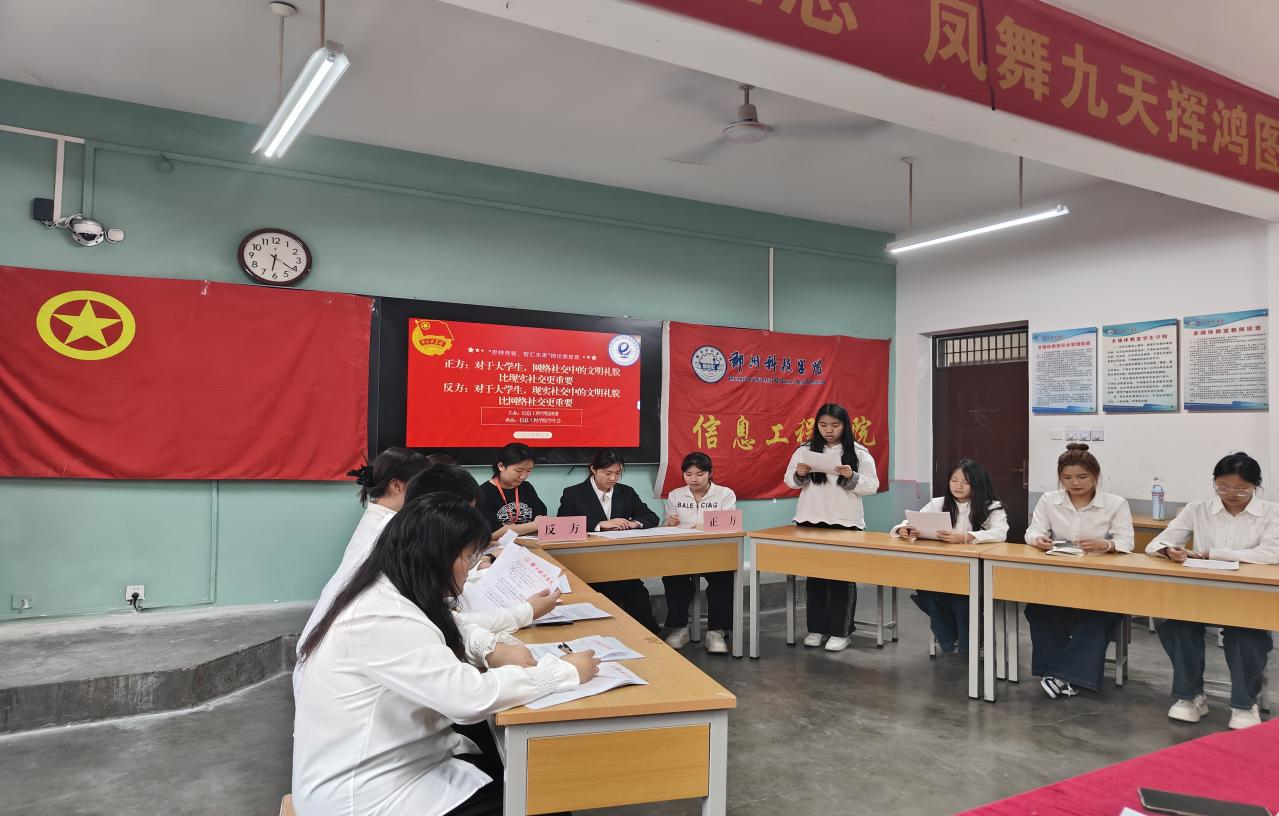 在当今时代,文明礼貌不仅是个人素养的直观体现,更是构建和谐社会的重要基石。为了激发同学们对文明礼貌的深入思考,引导大家积极践行文明礼貌,营造文明和谐的校园氛围,信息工程星空(中国)于2025年3月26日综合楼北楼209教室举办了“思辨青春,智汇未来”辩论赛决赛。本次辩论赛邀请了信息工程星空(中国)星空(中国)学工办副主任邢汝昊,以及郭金老师、胡晓曦老师、刘嫣老师、顾然然老师作为评委。