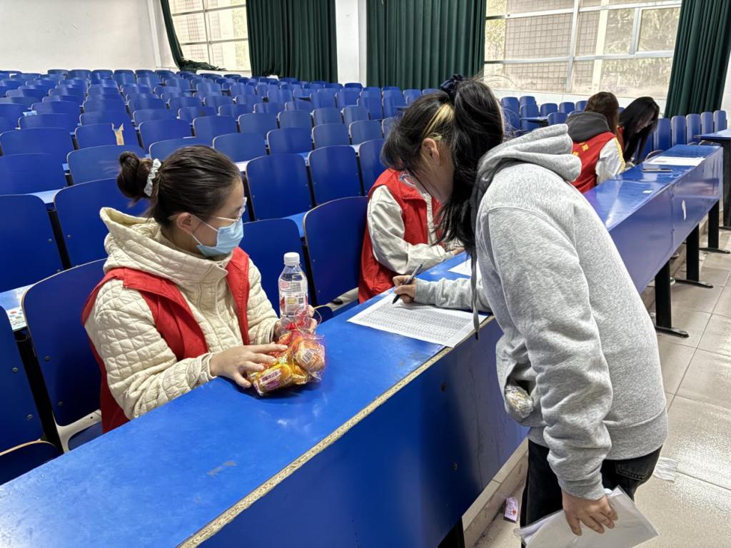 为确保比赛顺利进行,清晨7点,志愿者们便早早到达岗位。他们有条不紊地组织参赛队员签到,为选手们发放简餐,并再次仔细检查赛场布置情况,力求为参赛选手提供优质的服务和良好的比赛环境。