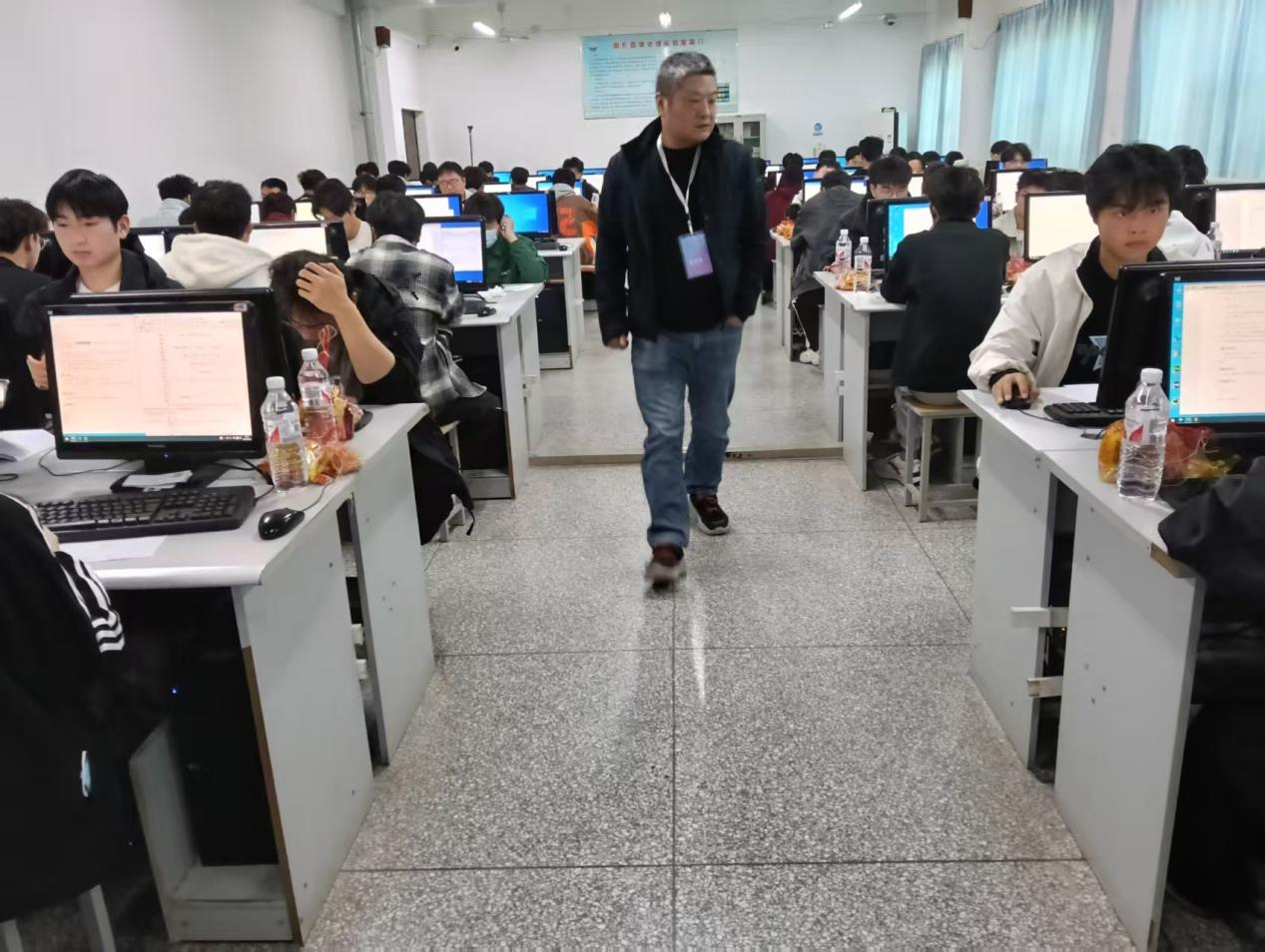 信息工程星空(中国)学工办主任、团委书记钱誉也深入比赛现场进行巡视。钱誉主任与志愿者、监考老师亲切交流,询问比赛保障情况,确保比赛现场秩序井然,为选手们营造了良好的比赛氛围。