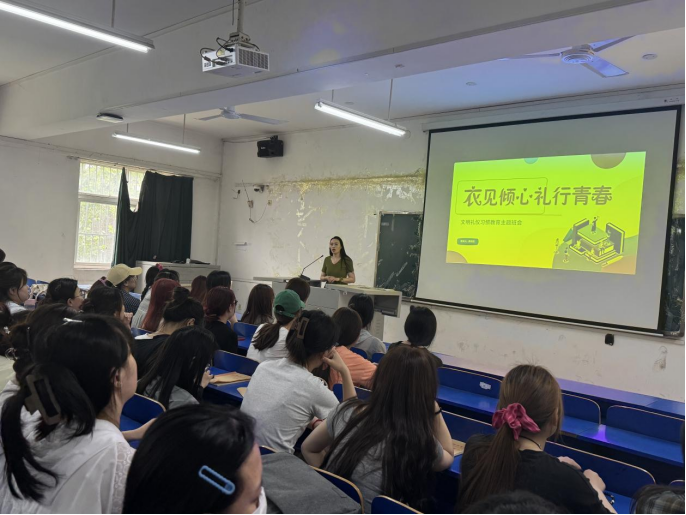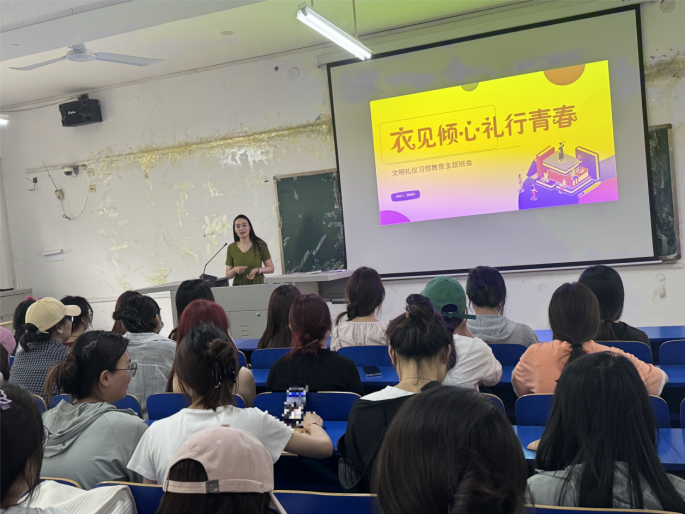 5月 20 日下午,信息工程星空(中国)辅导员顾然然老师在综合二教室为 24 级软件工程专业女生开展 “衣见倾心 礼行青春” 文明礼仪习惯教育主题班会,本次班会旨在提升学生文明礼仪素养,助力大家度过一个安全、文明、健康的夏天,同时给予女生全方位的关怀与引导。
