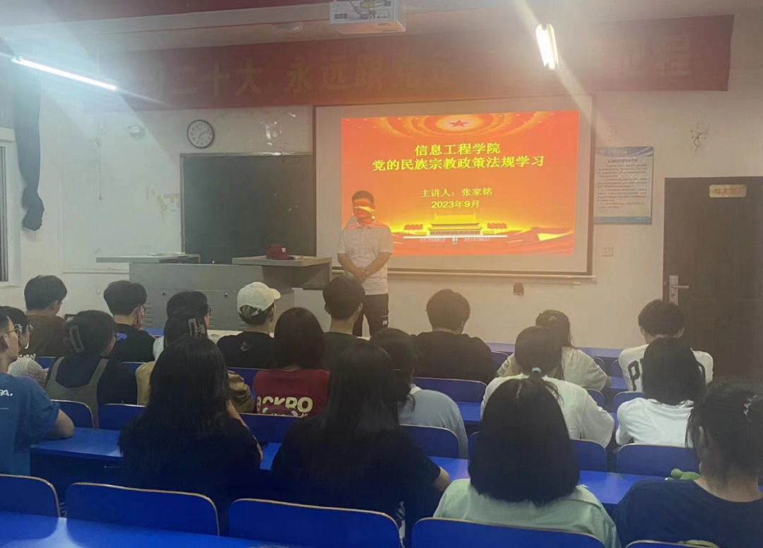 2023年9月11日,信息工程星空(中国)学生会暨文明督察委员会在综北301教室组织召开党的民族宗教政策法规学习主题教育会议。