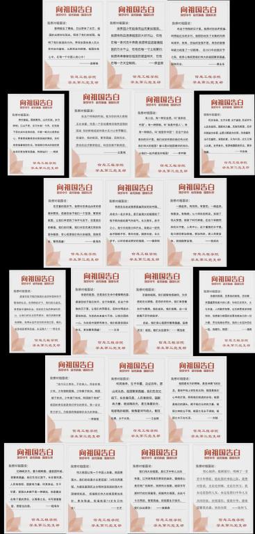 活动以“祖国,我为您写一封‘告白情书’”开篇,同学们积极踊跃参与,一纸情书尽显对祖国母亲的告白,将长情作为誓言,见证祖国母亲不屈的灵魂和繁荣强大。在这举国欢庆的日子里,祝福伟大祖国繁荣昌盛,国泰民安。一张张图片表达了同学们对祖国的爱;有一种红,叫“中国红”;有一种自豪,叫“我是中国人”;有一种告白,叫“我爱你中国”;爱就大声说出来。
