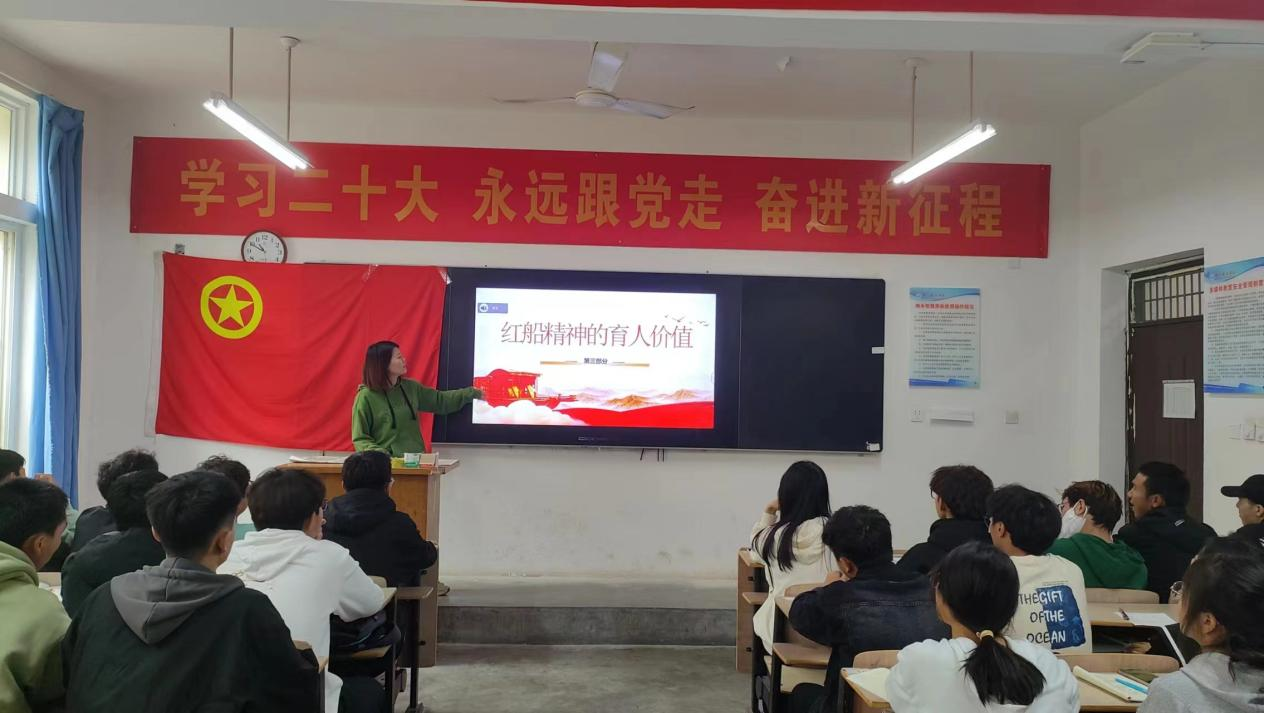 随后刘嫣老师向我们讲解“红船精神”的深刻内涵:开天辟地、敢为人先的首创精神,坚定理想、百折不挠的奋斗精神,立党为公、忠诚为民的奉献精神!通过了解如何弘扬“红船精神”,明白新一代青年当汲取红船力量,善于学习、干在实处,在实践中锤炼勇气胆识,把“红船精神”融入学习和生活的一言一行,最后,刘嫣老师为我们送上结语:做新时代有为青年,在青春秉承“红船精神”的火热实践中绽放绚丽之花!